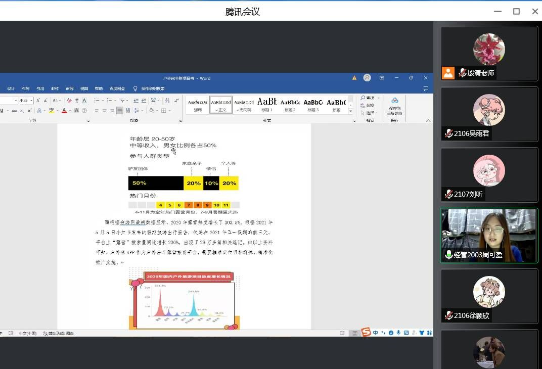 在2022年省老员工电子商务“创新、创意及创业”挑战赛获奖的三位同学(2001杨光、2003周可盈、2107李昕宸)就创业机会识别、商业模式选择、融资方案制定等多个模块对创业计划书的撰写过程进行了分享,并与部分同学进行了交流。