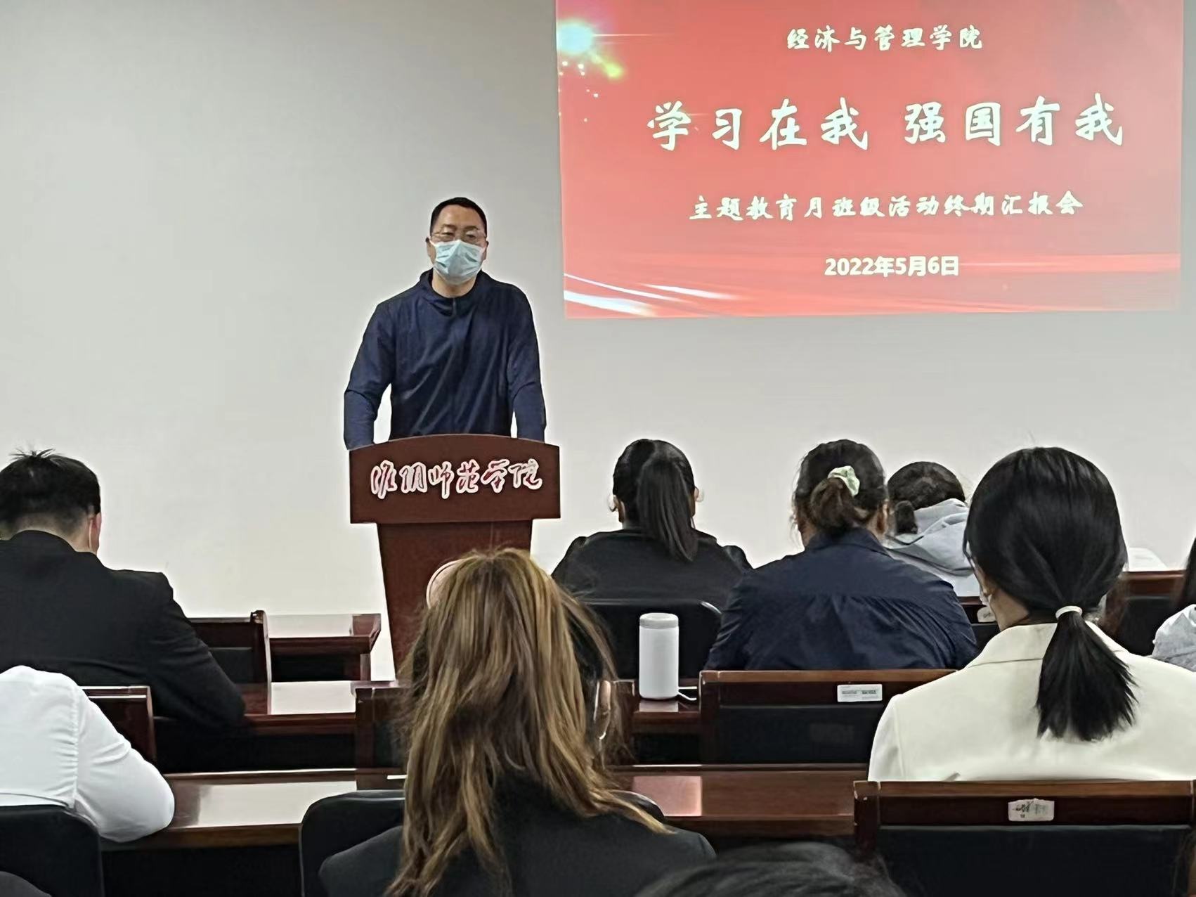 5月6日下午,经济与管理公司举办“学习在我 强国有我”主题教育月终期总结汇报大会,公司党委副书记鲍恩波老师、全体辅导员和公司所有班级班长参加了会议。
