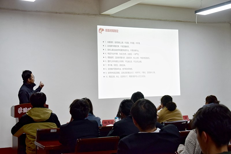 活动伊始,各班班长逐个汇报班级本次主题教育月活动的开展情况、取得的成效以及存在的不足。各班的PPT制作精美,汇报人声音洪亮。各班的汇报主要聚焦学习和生活两个方面。在生活上,各班关注宿舍成员之间的生活状况,重视宿舍卫生,增强宿舍成员之间的凝聚力。在学习上,各班积极引导同学们以学为本,完善班规,加强学风建设。此外,许多班级还发挥主观能动性,结合本班特色,以赛代练,以班级为单位组织各类竞赛,成果颇丰。
