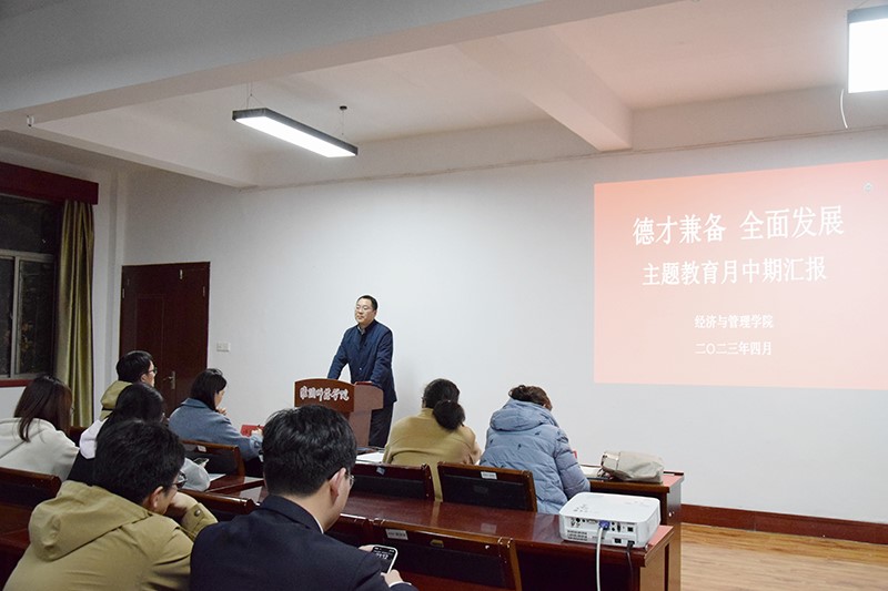 为了解各班主题教育月活动的开展成效,推动各班级相互学习,4月6日晚,云顶国际8588yd经济与管理公司在经管楼201会议室开展“德才兼备 全面发展”主题教育月中期汇报活动。经济与管理公司党委副书记鲍恩波、全体辅导员、大一大二大三各班级班长参加了本次汇报活动。