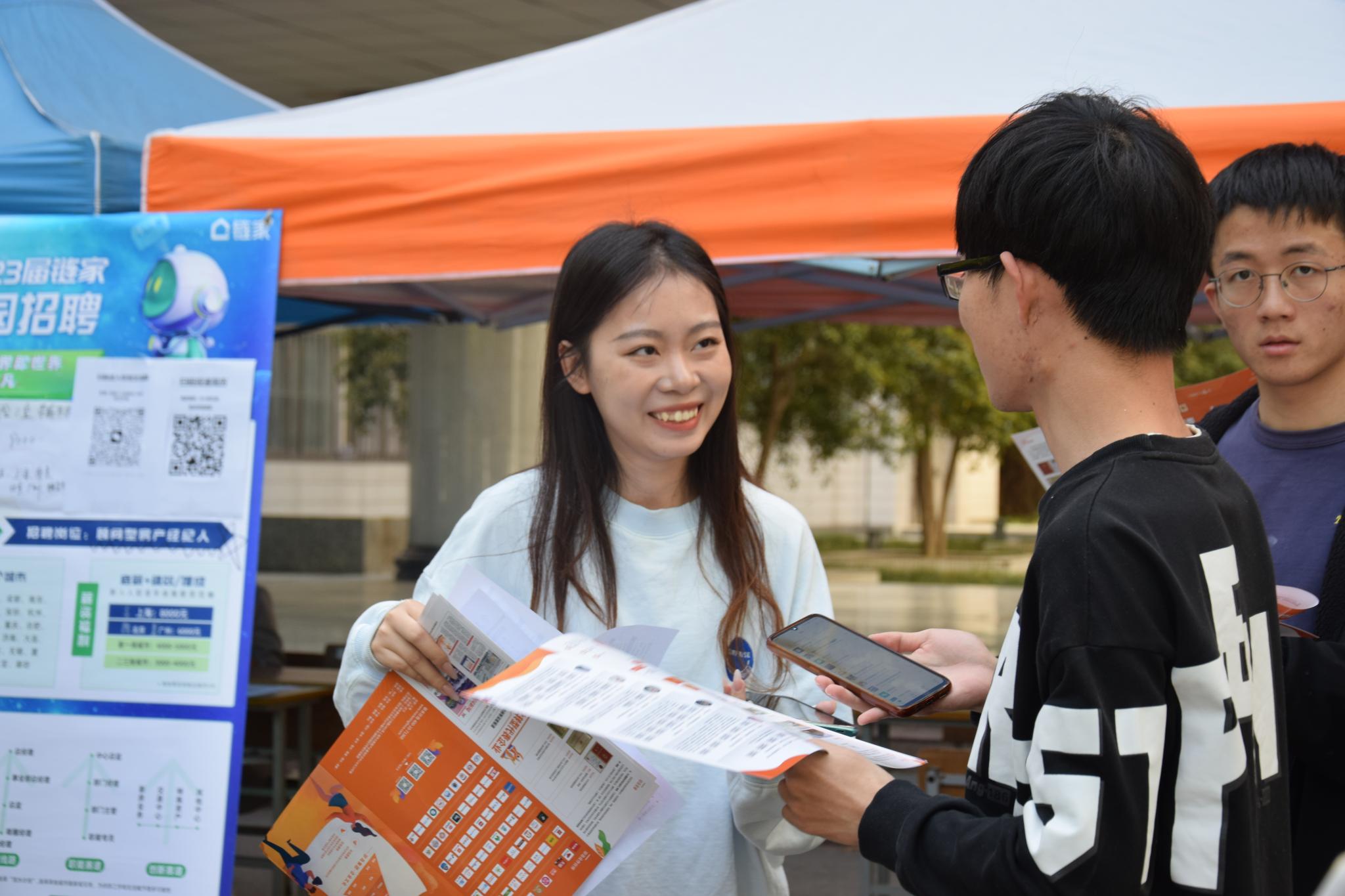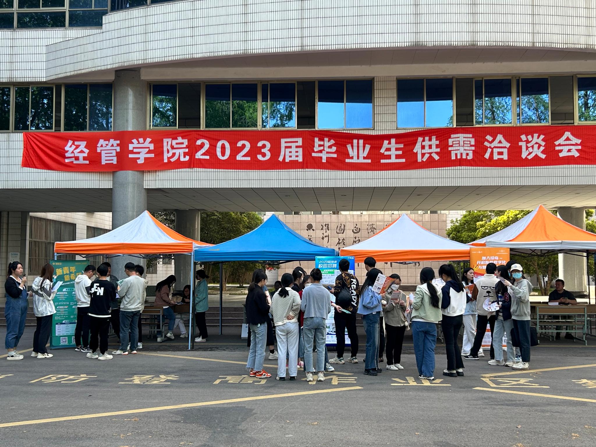 为贯彻落实党中央、国务院“稳就业”“保就业”决策部署,日前,经管公司开展“访企拓岗促就业”活动暨2023届毕业生供需洽谈会,活动在东校区综合楼广场及线上同时举行。新希望六和股份有限公司、珍岛信息技术(上海)股份有限公司、太平洋房地产经纪有限公司、链家房地产经纪有限公司等30余家用人单位提供了2000余个就业岗位,吸引800余人次毕业生前来咨询。