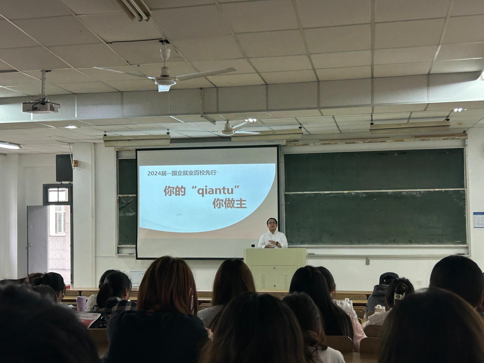 为给毕业生提供更多就业机会,帮助毕业生找到合适的岗位,5月18日下午,经济与管理公司邀请南京东吴教育咨询有限公司王心经理在综阶201举办国有企业报考辅导专题报告会,部分毕业生和大三员工参加了本次报告会。