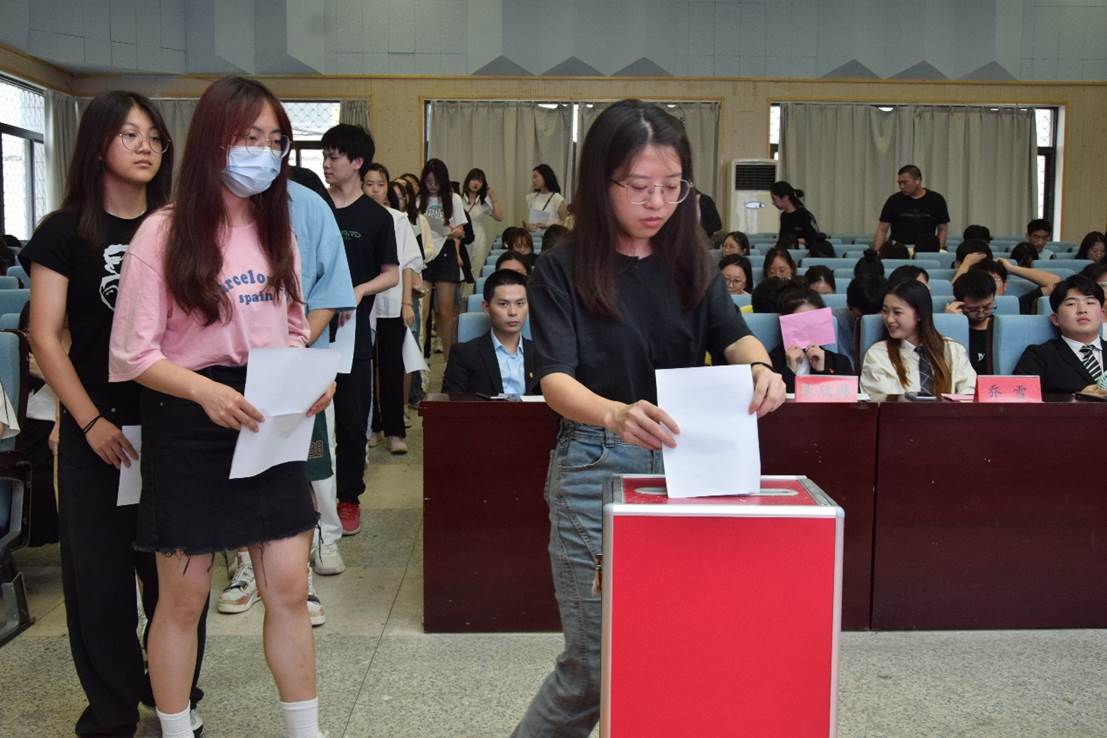 竞聘演讲结束后,员工代表们本着公平、公正、公开的原则对参加竞聘的同学进行投票,各位代表依次郑重地将选票投入票箱。选举工作井然有序,现场氛围庄严热烈。结束投票后,计票员严格计算候选人得票数,辅导员邵小八老师宣读投票结果。至此,会议圆满落下帷幕。