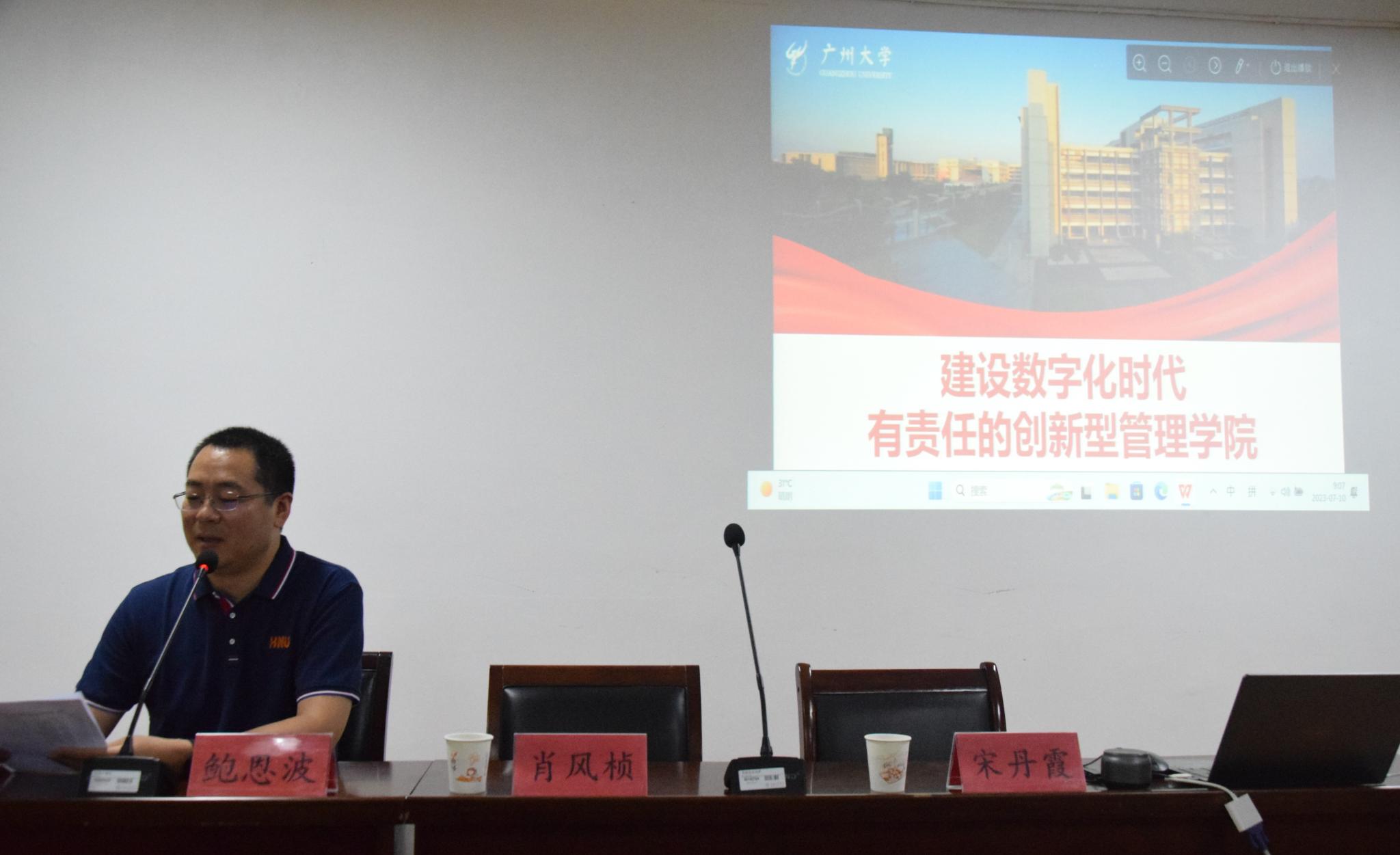 为激发留校考研学子学习斗志,坚定同学们考研决心,2023年7月10日上午9:00,公司经济与管理公司于经管楼201召开“建设数字化时代,有责任的创新型管理公司”主题大会。本次会议由公司党委副书记鲍恩波,携手广州大学管理公司肖风桢老师、宋丹霞老师共同主持,辅导员楚娟协助参与。