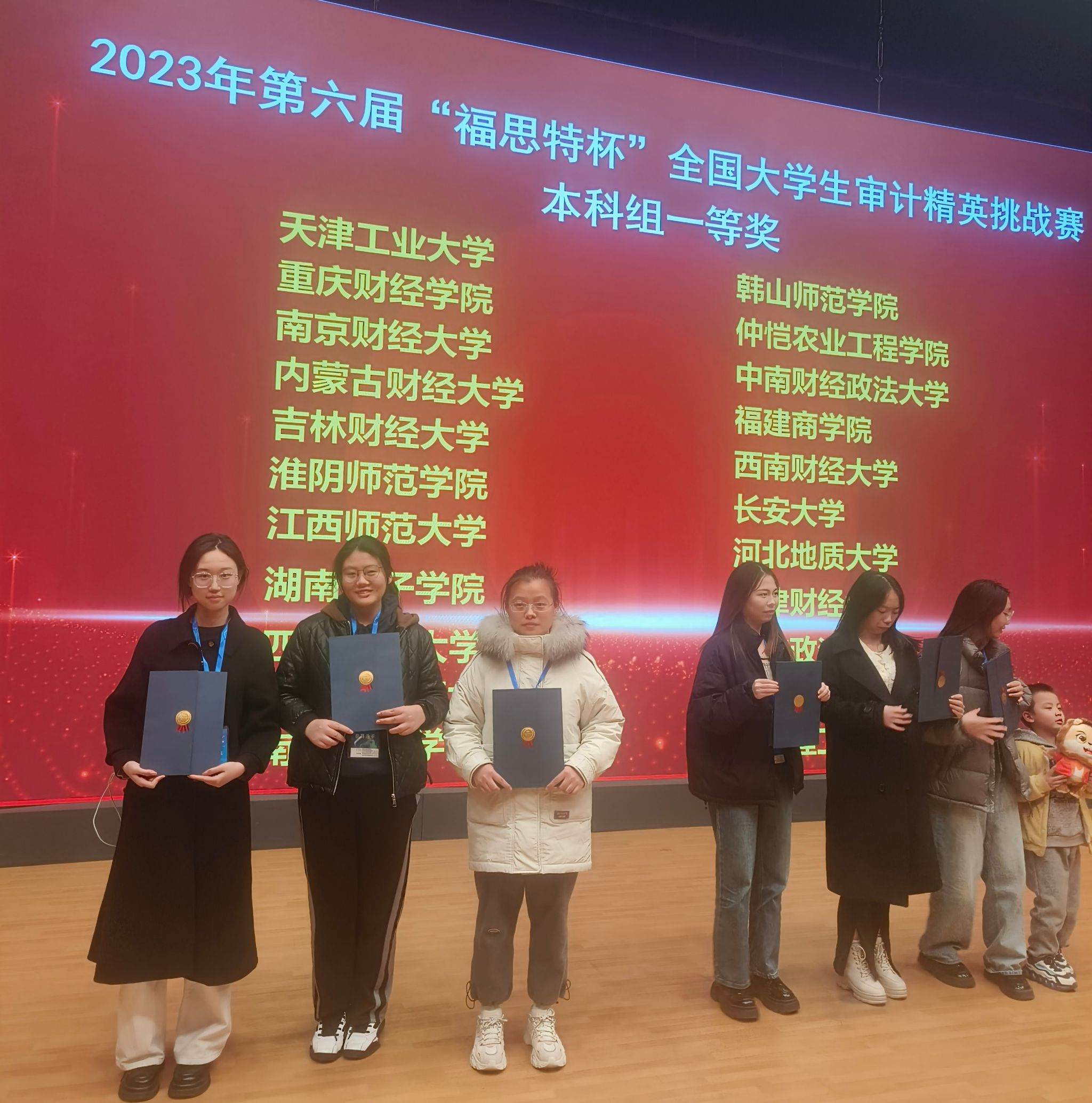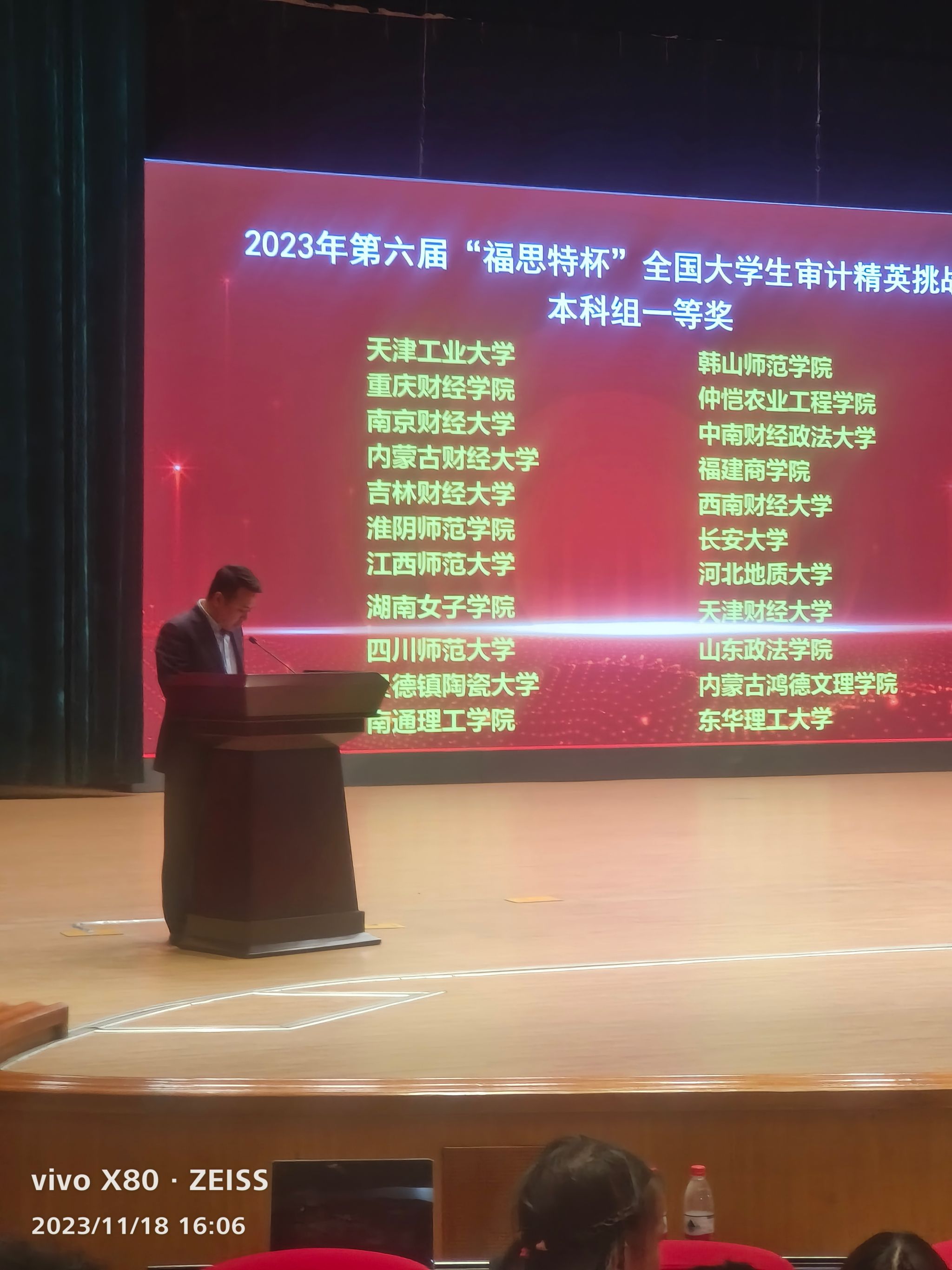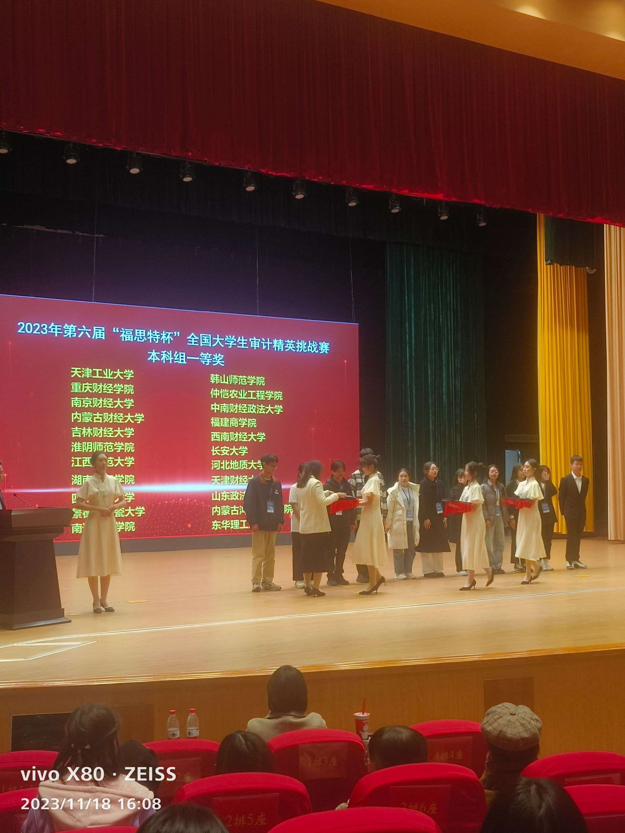 图为2023年第六届“福思特杯”全国老员工审计精英挑战赛总决赛本科组一等奖名单。指导教师 付道美 摄