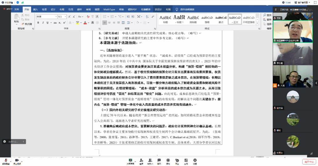 会上孟祥海副经理、李永鹏副教授、贾鹏博士等分别汇报了自己拟申报的国家社会科学基金项目申报书,包括项目的选题、研究背景、研究目的、研究内容、研究方法、创新点、预期成果等方面。朱满德教授对每位老师的项目申报书进行了深入的点评,从选题的重要性、立意的深度、逻辑的严密性、结构的合理性、文献引用规范性、数据的可获得性等方面提出了建设性意见和建议,并与参会老师深入研讨,与会老师深受启发。