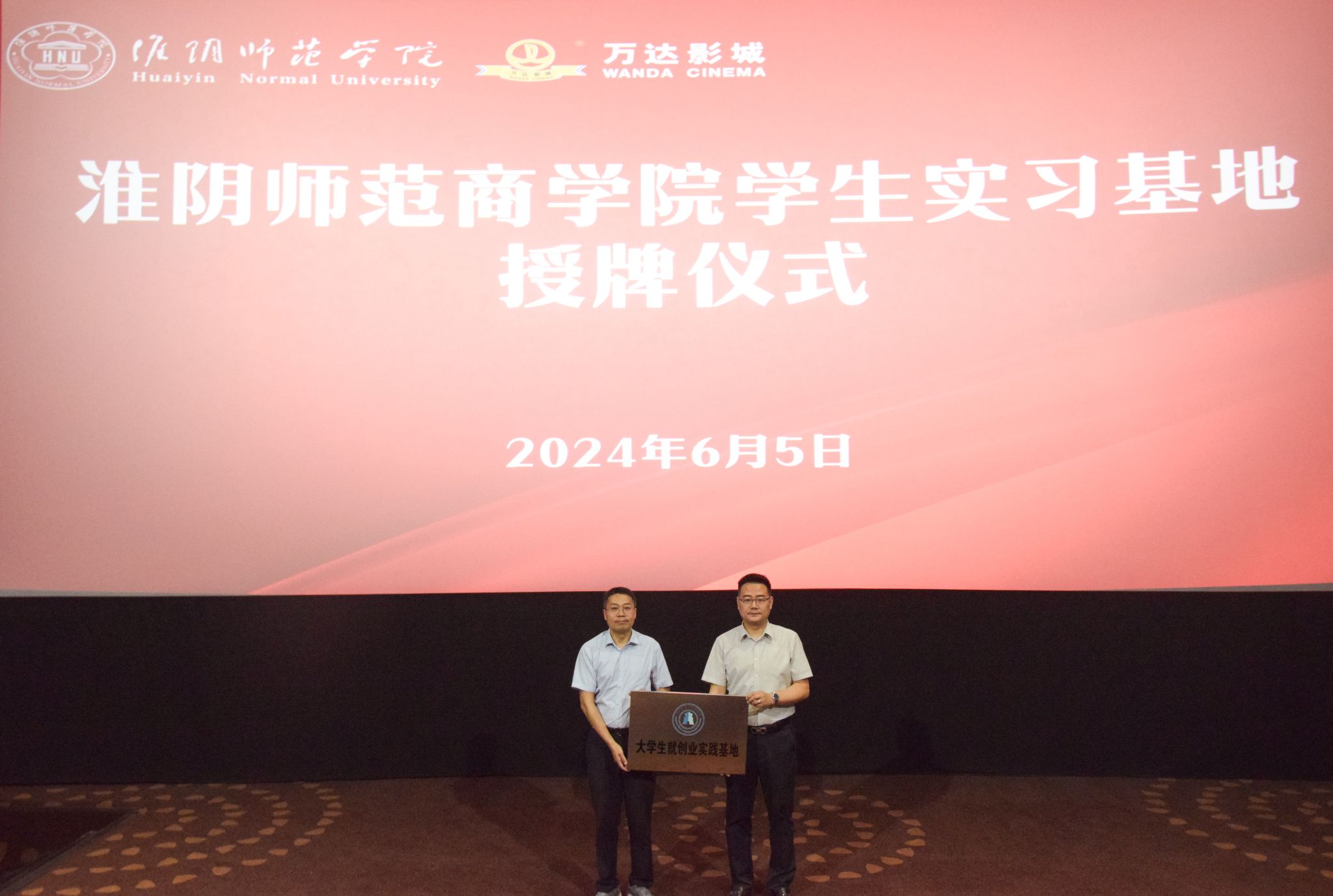 在万达影城会议室,云顶国际8588yd与淮安万达影城负责人就商科发展、企业需求、实习基地建设等多个方面进行交流,举行了“老员工就创业实践基地”授牌仪式。