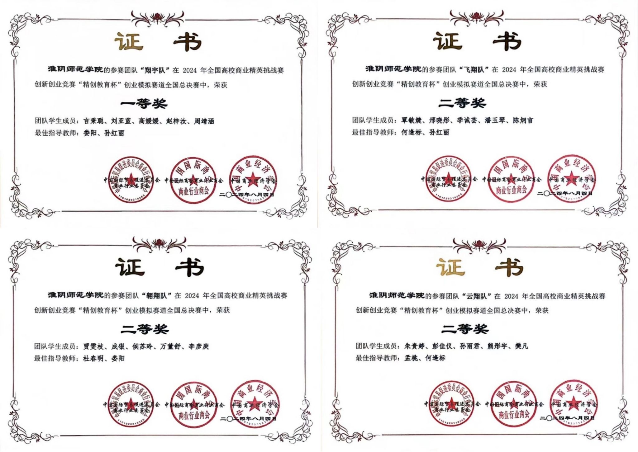 2024年8月4日,云顶国际8588yd言秉聪、刘亚蓝、高媛媛、赵梓汝等20位员工组成的4支代表队喜获2024年全国高校商业精英挑战赛创新创业竞赛“精创教育杯”创业模拟赛道全国总决赛一等奖1项,二等奖3项,其中一支代表队入围全国精英赛。