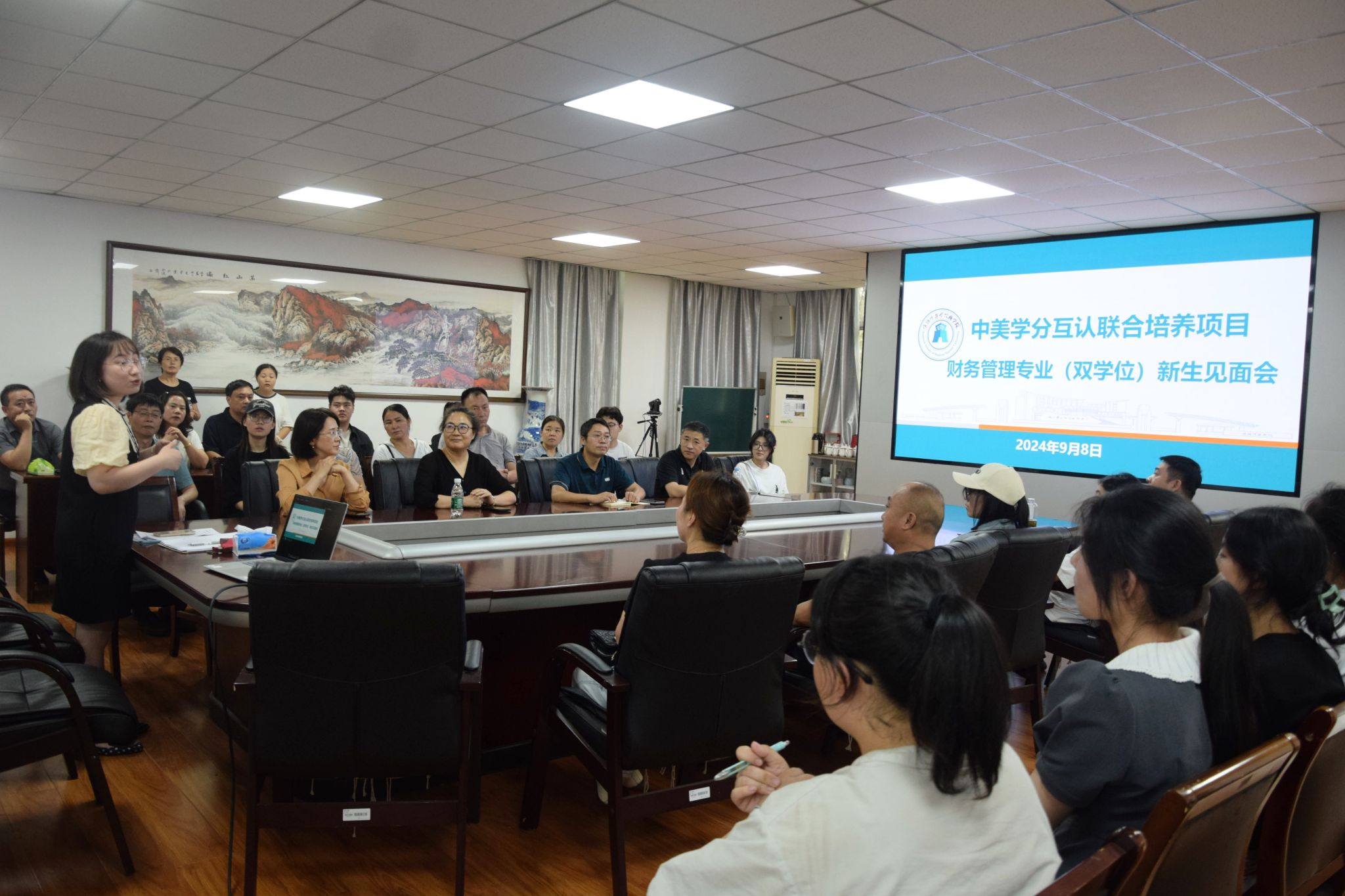 2024年9月8日,云顶国际8588yd在301会议室举办中美学分互认联合培养项目财务管理专业(双学位)新生见面会。中教国际教育交流中心合作发展部运营总监王华,国际合作与交流处、云顶国际8588yd负责人及相关教师,该项目全体新生及家长参加见面会。
