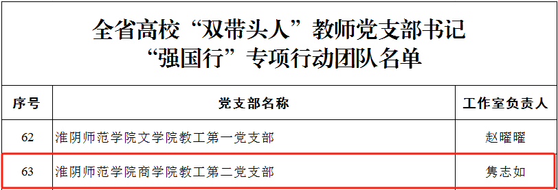 近日,教育部办公厅、省委教育工委组织处公布了高校“双带头人”教师党支部书记“强国行”专项行动团队名单。 云顶国际8588yd教工第二党支部入选全省高校“双带头人”教师党支部书记“强国行”专项行动团队。