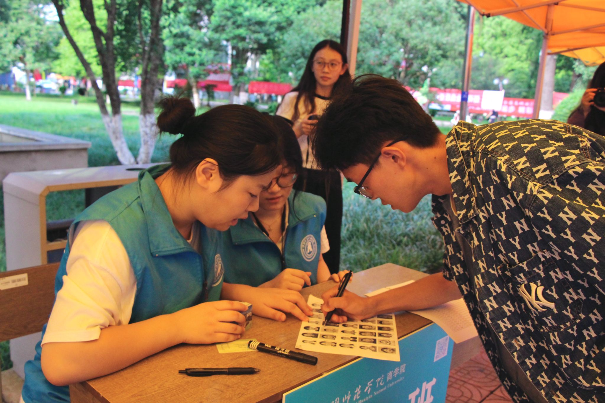 迎新信息录入点(记者 胡文雅 摄)