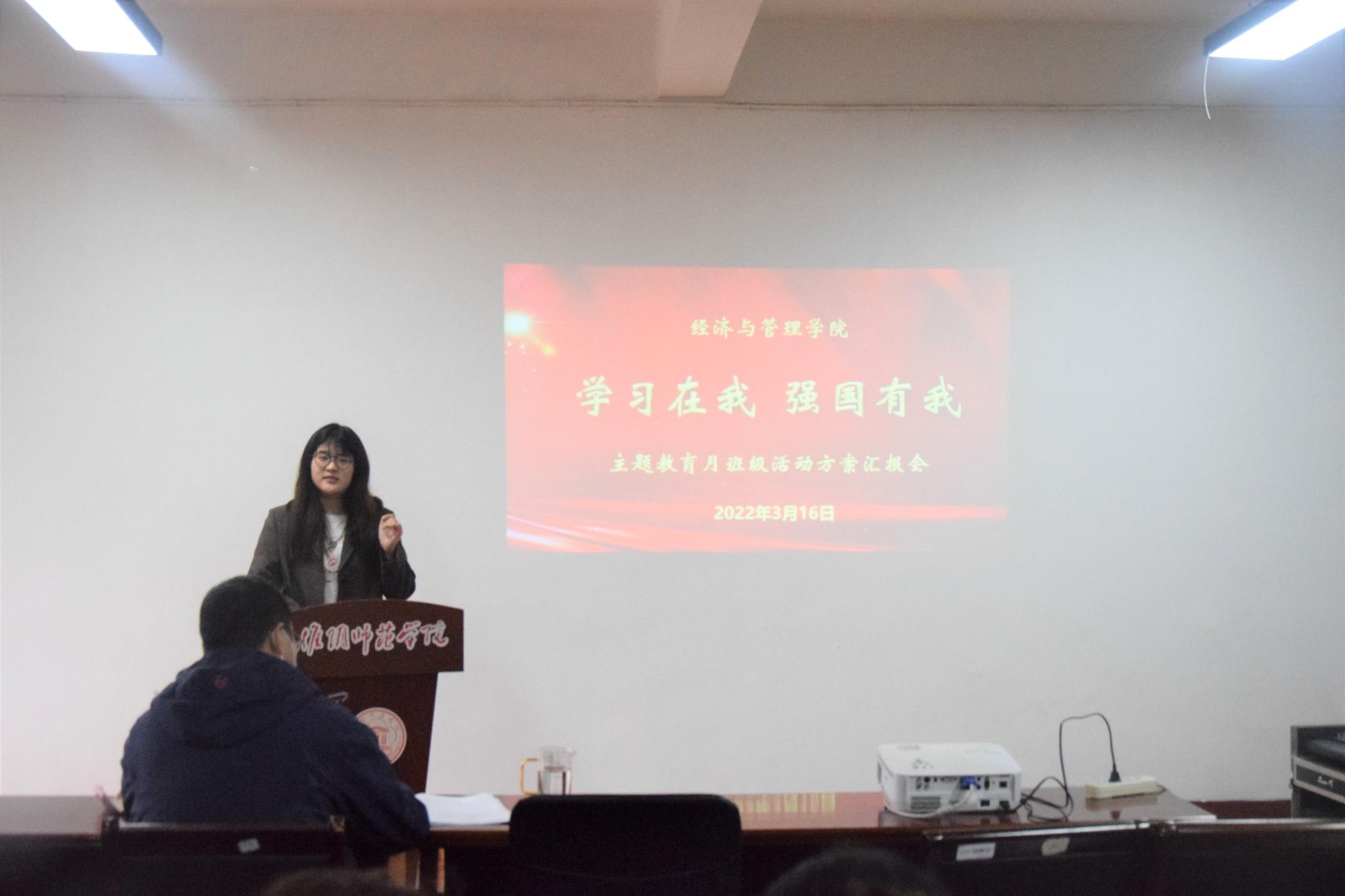 3月16日下午,经管公司于经管201开展了“学习在我 强国有我”主题教育月班级活动方案汇报会。党委副书记鲍恩波老师、学工办主任殷清老师以及各班班长参加了本次现场汇报会。