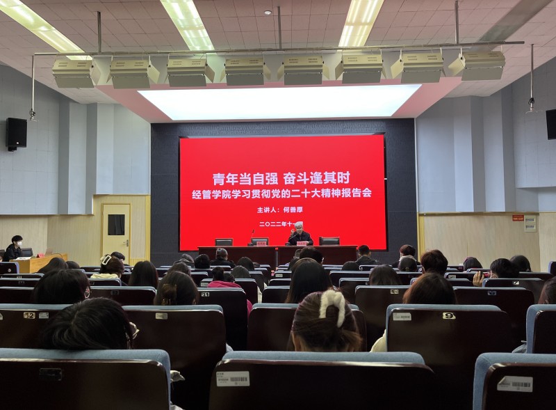 报告会的成功举办为经管师生进一步学习贯彻党的二十大精神提供了启发和指导。与会员工倍感振奋,信心满怀,纷纷表示,一定会牢记习近平总书记嘱托,坚定不移听党话、跟党走,怀抱梦想又脚踏实地,敢想敢为又善作善成,立志做有理想、敢担当、能吃苦、肯奋斗的新时代好青年,让青春在全面建设社会主义现代化国家的火热实践中绽放绚丽之花。