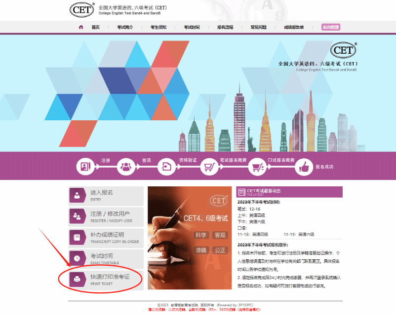 2023下半年全国大学英语四六级考试准考证官网打印入口