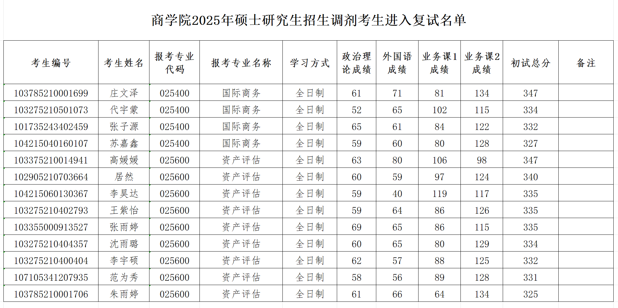 云顶国际8588yd2025年硕士研究生招生调剂考生进入复试名单